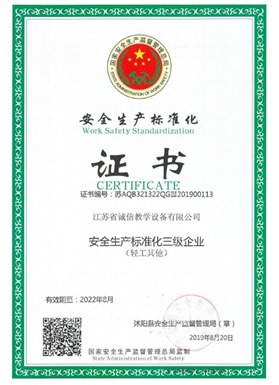 江蘇省誠信教學設備有限公司成立于2003年,是一家專注教學設備研究開發(fā)、生產制造、銷售服務為一體的綜合性教育、服務型企業(yè),是江蘇省教育設備行業(yè)協(xié)會會員單位、中國教育裝備行業(yè)協(xié)會會員單位,公司先后通過ISO9001國際質量管理體系認證、IS14001國際環(huán)境管理體系認證、OHSAS18001職業(yè)健康安全管理體系認證。數十年的激勵前行鑄就企業(yè)優(yōu)質的產品品質和服務質量。